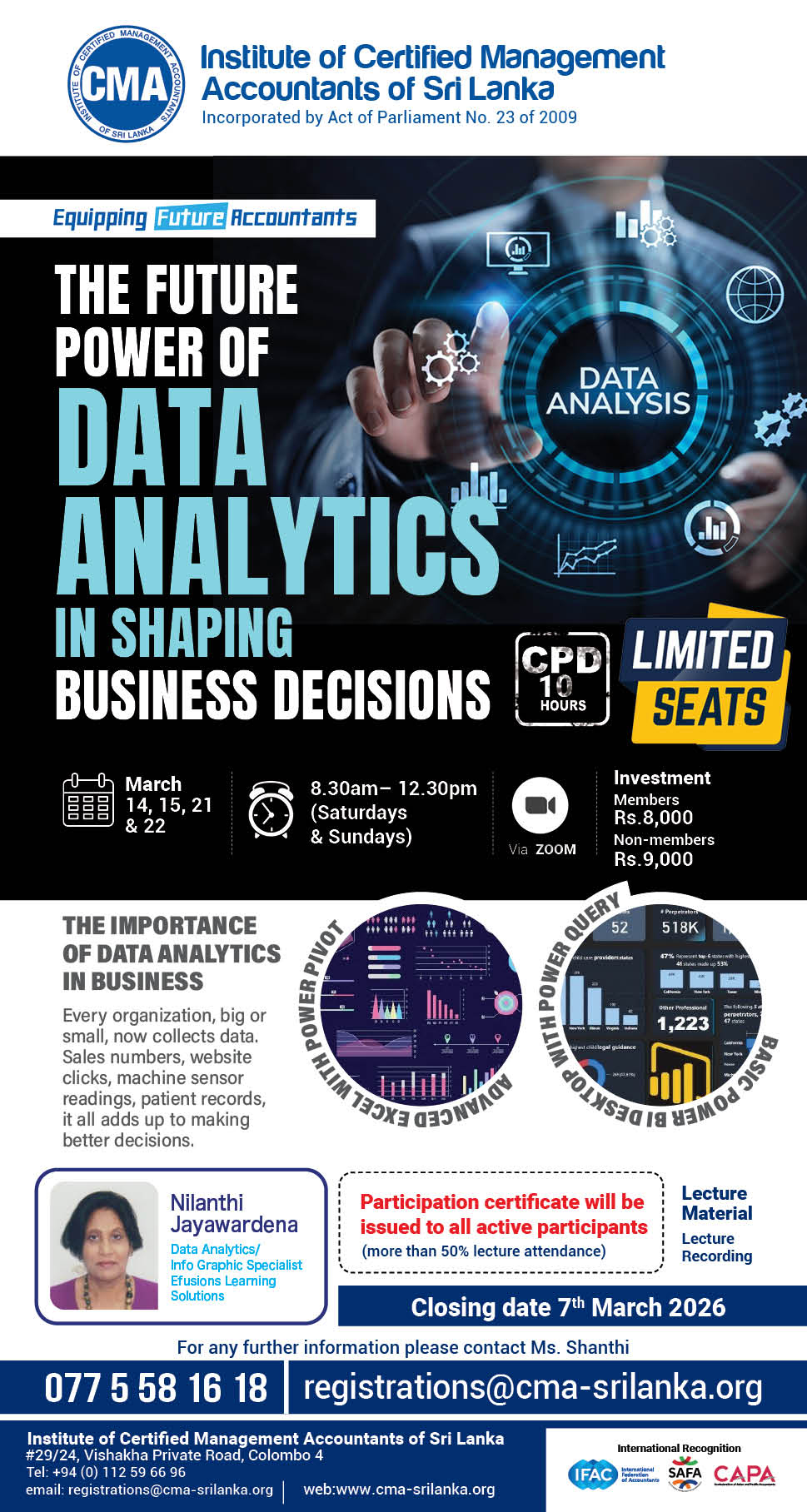 - Register now: registrations@cma-srilanka.org