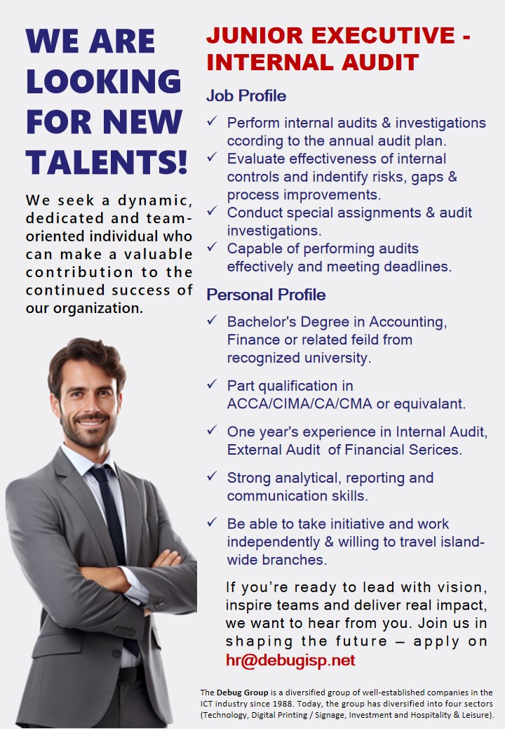 | Debug Group | Junior Executive - Internal Audit | 21-10-2025 | View |