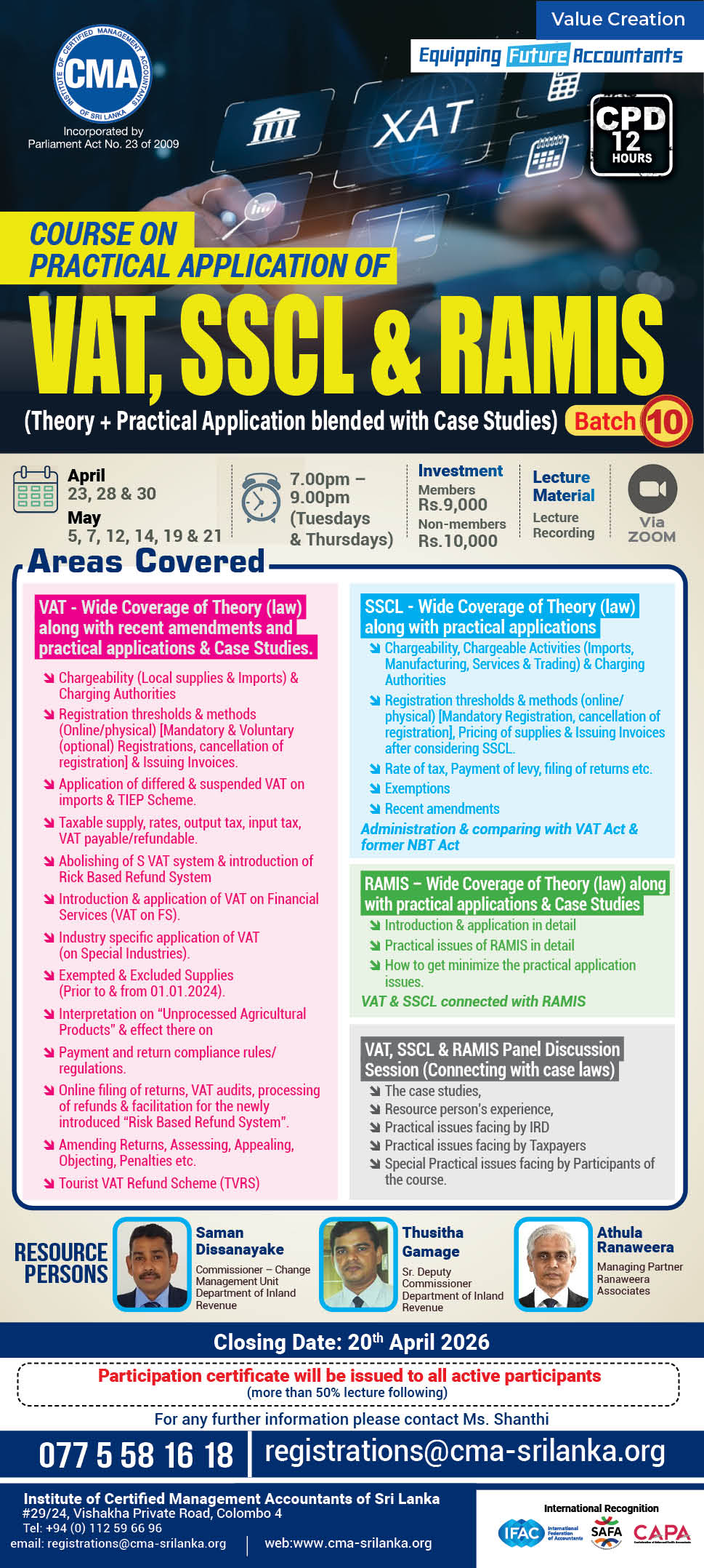 #CMA #Taxation #VAT #SSCL #RAMIS #ProfessionalDevelopment #CPD #AccountingProfession